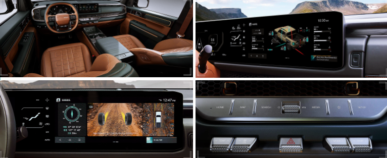 - 헤드업 디스플레이 (HUD): 속도, 내비, 안전 정보가 전방 시야에 투사되어 시선 분산 최소화