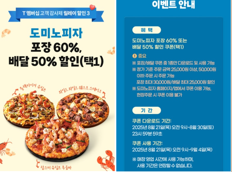 도미노피자 T멤버십 할인 혜택을 놓치지 마세요!