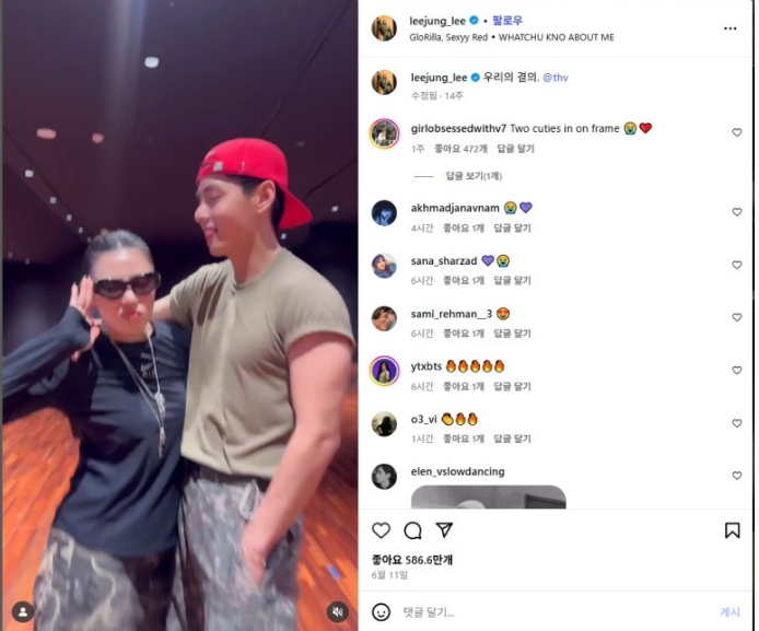 리정이 안무 디렉터로 참여했던 곡에 뷔가 참여해 영상으로 함께 춤을 추며 자연스러운 친분을 보여줬었죠.
