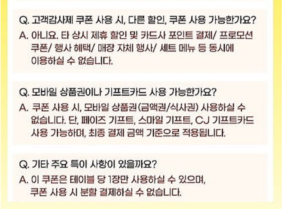 - 다른 할인(카드, 생일쿠폰 등)과 중복 적용 안 되나요?