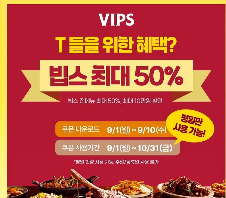 T멤버십만 있으면 반값에 빕스 먹을 수 있는 기회, 절대 놓치지 마세요!