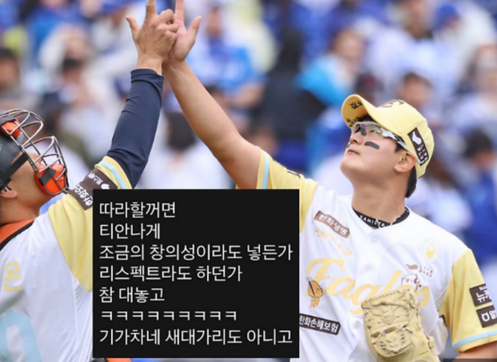 - “솔직히 김서현 세레머니가 너무 똑같긴 했음. 따라한 건 맞지 않나?”