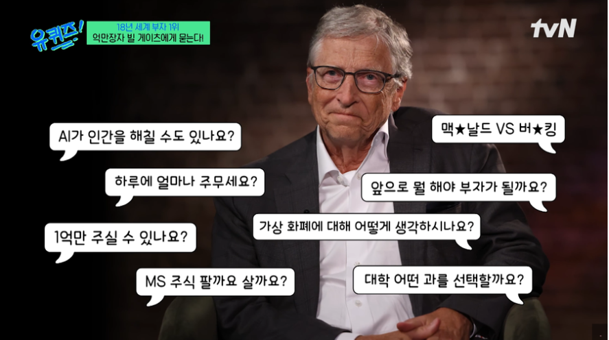 앞으로도 유퀴즈가 이런 시대의 이야기를 품는 플랫폼으로, 또 빌 게이츠와 같은 리더들이 대중과 소통하려는 열린 태도를 지속해 나가길 기대합니다.