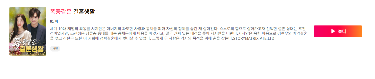 - Step 2: ‘폭풍같은결혼생활’ 작품 검색