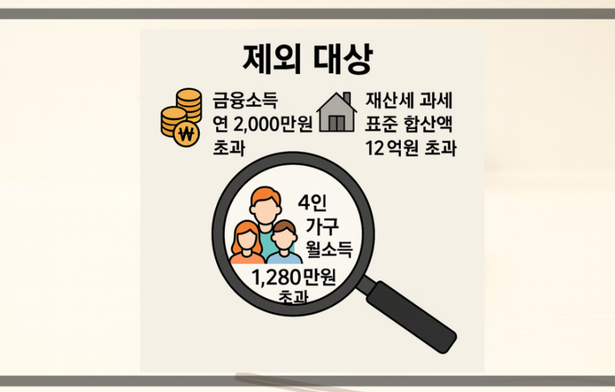 | 제외 대상 | 상위 10% 고액 자산가 (재산세, 금융소득 등 고려) |